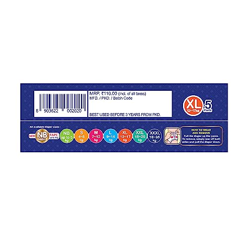 MamyPoko Pants Extra Absorb Baby Diapers X-Large (XL) 5 Count 12-17 kg