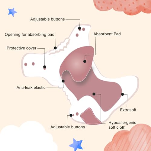 Mee Mee Reusable Baby Cloth Diaper, Double Leak Guard, High Absorption, Quick Dry, Stain-Proof Comfort & Protection, 3m+, Adjustable Waist & Height with snap Buttons, Absorbent Insert