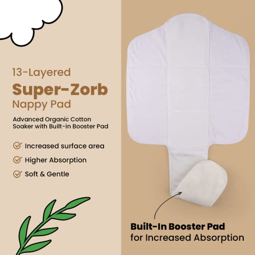 FOLDABLE PAD FOR SUPER ABSORPTION: The 9-Layered Organic Cotton Soaker Pad is made with high absorption premium soft cotton for AiryDry Comfort. The foldable pad has a super absorbent Plant-Made Core and two side-wise cotton foldings to ensure triple dry