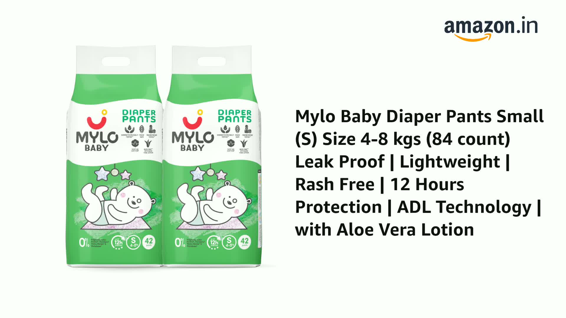 Mylo Baby Diaper Pants Small (S) Size 4-8 kgs (84 count) Leak Proof | Lightweight | Rash Free | 12 Hours Protection | ADL Technology | with Aloe Vera Lotion