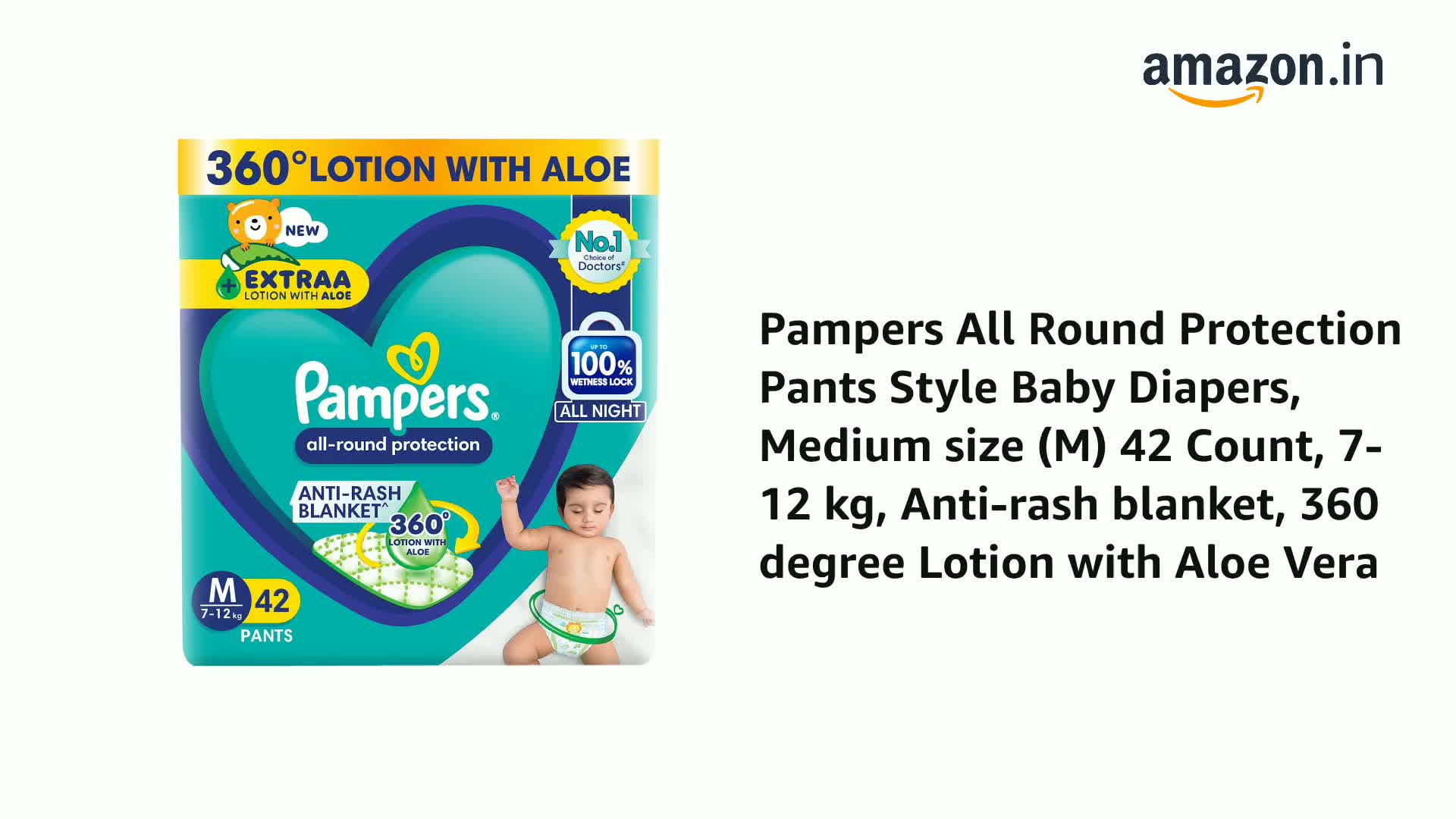 NEW IMPROVED Pampers all round protection pants have ANTI RASH BLANKET* containing Lotion with Aloe Vera to keep your baby skin protected from redness and rashes. Top quality diaper pants with Up to 100% WETNESS LOCK keeps the pee locked inside and baby's bum stays dry for ALL NIGHT. Air channels & stretchy belt provides your baby breathable airy fit comfortable even in summers. Pampers unique Magic gel technology provides up to 12 hours of dryness and has up to 2X faster absorption The new and improved design has an EXTRA SOFT material and a fit that adapts to baby movements for best comfort. Available in all sizes Small diapers medium diaper pants large size diaper pants XL diapers XXL diapers XXXL diaper pants. Our pants with fun exterior graphics fun designs of characters and a delightful fresh Aloe fragrance ensures you enjoy every change with your baby (*Blanket refers to soft topsheet with lotion Helps prevent rash due to wetness after 1 day of usage based on clinical studies in USA 2000 2019)