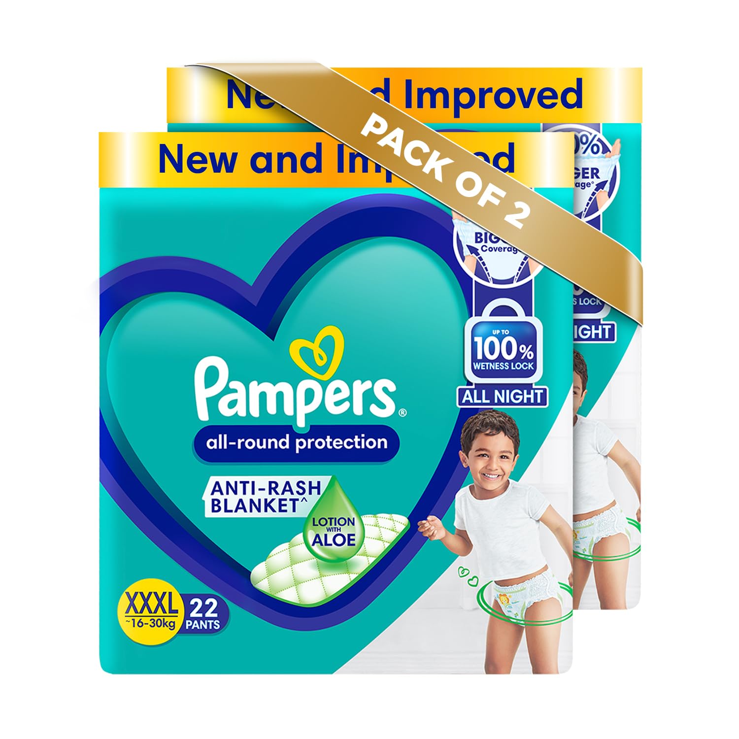 Pampers All round Protection Pants Style Baby Diapers XXX-Large (XXXL) Size 22 Count Anti Rash Blanket Lotion with Aloe Vera 17+ kgs Diapers (Pack of 2)
