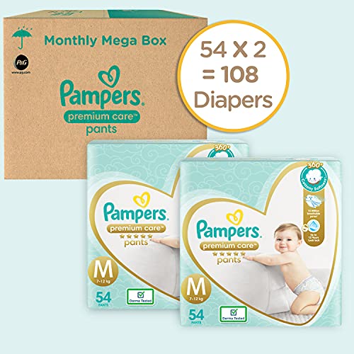 Pampers Premium Care Pants Diapers Medium 54 Count & Pampers Premium Care Pants Diapers Monthly Box Pack Medium 108 Count