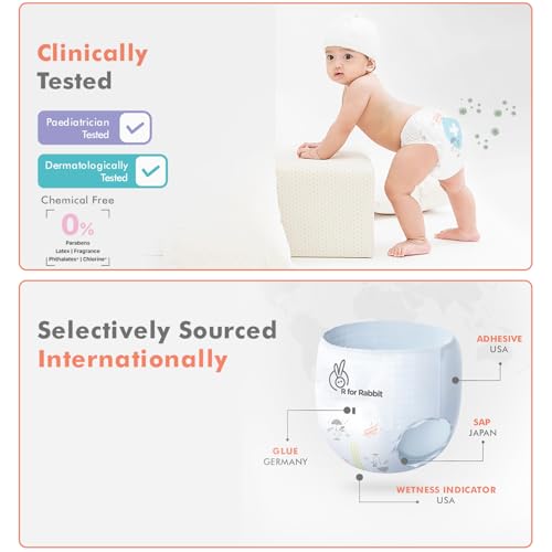 • Breathable Diaper of Medium Size: R for Rabbit Feather Diapers for M size having 10 Million* Breathable pores which allows the air to easily pass through making the diapers highly breathable and acting as a rash guard for your baby by instantly locking mo