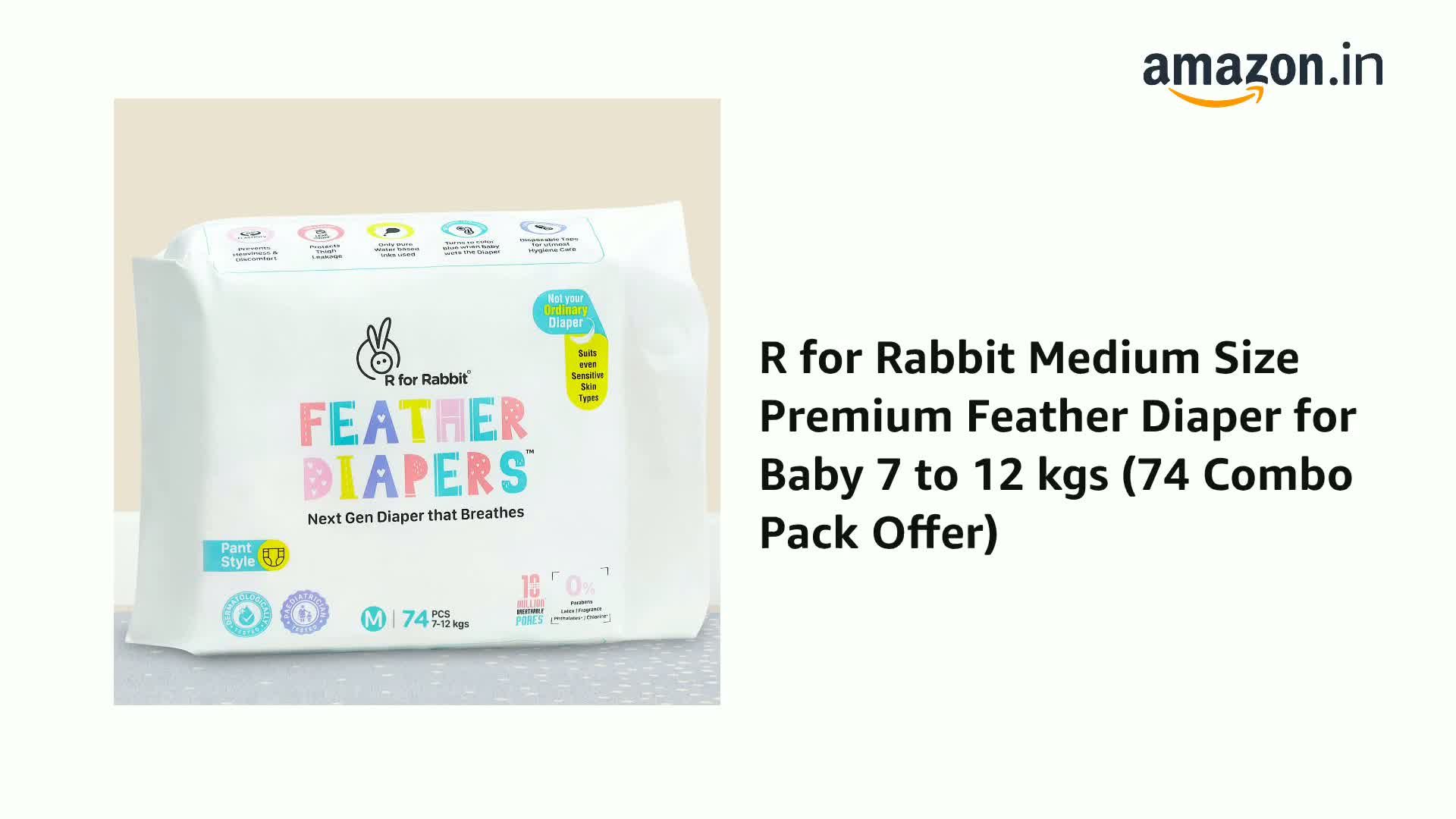 R for Rabbit Medium Size Premium Feather Diaper for Baby 7 to 12 kgs (74 Combo Pack Offer)