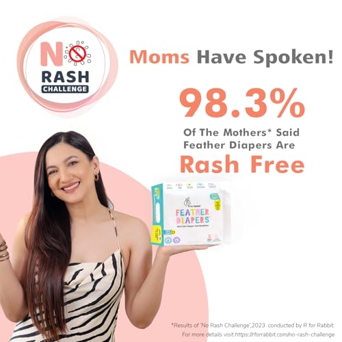 Say No to Diaper Rashes R for Rabbit introduces Feather Diapers-Next Gen diapers that breathes these baby diapers are highly breathable and are as thin soft and light weight as feathers. R for Rabbit Feather Diapers for XS are Yoga Pant style diapers with up to 12-hours of super-absorbency and High waist makes it leak proof and super comfortable for active babies. R for Rabbit Pant Style diapers are clinically tested by dermatologist and Pediatrician and are recommended for sensitive skin type babies also. So make your child playtime or sleep time full of comfort with Feather Diapers.