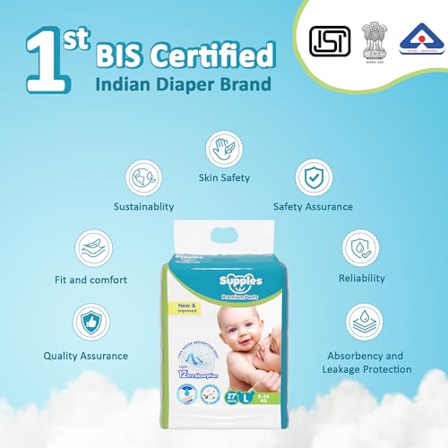 SUPPLES PREMIUM DIAPER PANTS: Choosing the diaper for your baby is an important step in ensuring your little one comfort during the day as well as overnight. We understand that nothing is more important than the comfort of your little baby. With Supples Premium diaper pants we want to keep your baby comfortable both in day as well as in night thus delivering happiness to every doorstep. Choosing the right diaper size based on baby weight is important. The diaper capacity may vary among babies depending on the volume of pee and posture. Available in sizes NB S M L XL XXL