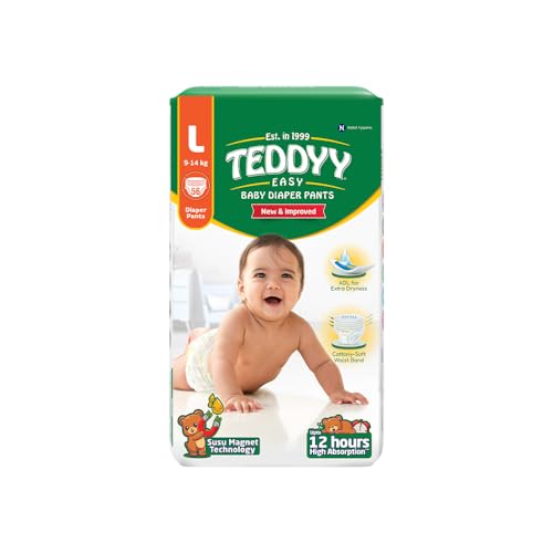 TEDDYY Baby Diapers Pants Easy Large 56 Count (Pack of 1) 9-14 kgs 12 hrs Leak Protection Anti - Bacterial