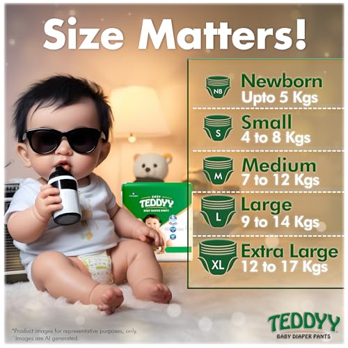 TEDDYY Baby Diapers Pants Easy Small 170 Count (Pack of 10) 4-8 kgs 12 hrs Leak Protection Anti - Bacterial