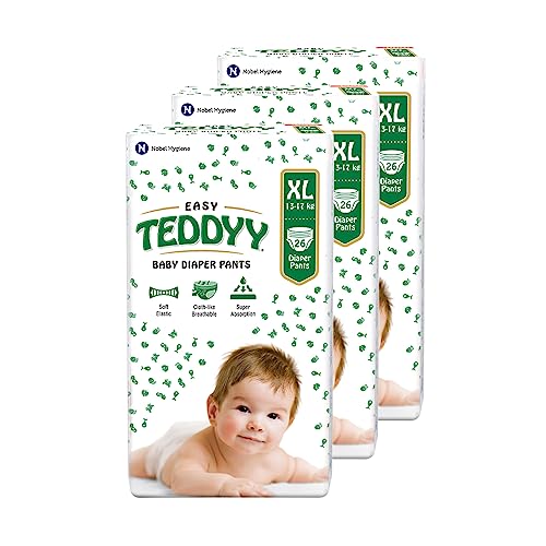 TEDDYY Baby Easy Extra Large Diaper Pants 78 Count(Pack of 3), 12-17 kgs, 12 hrs Leak Protection, Anti - Bacterial