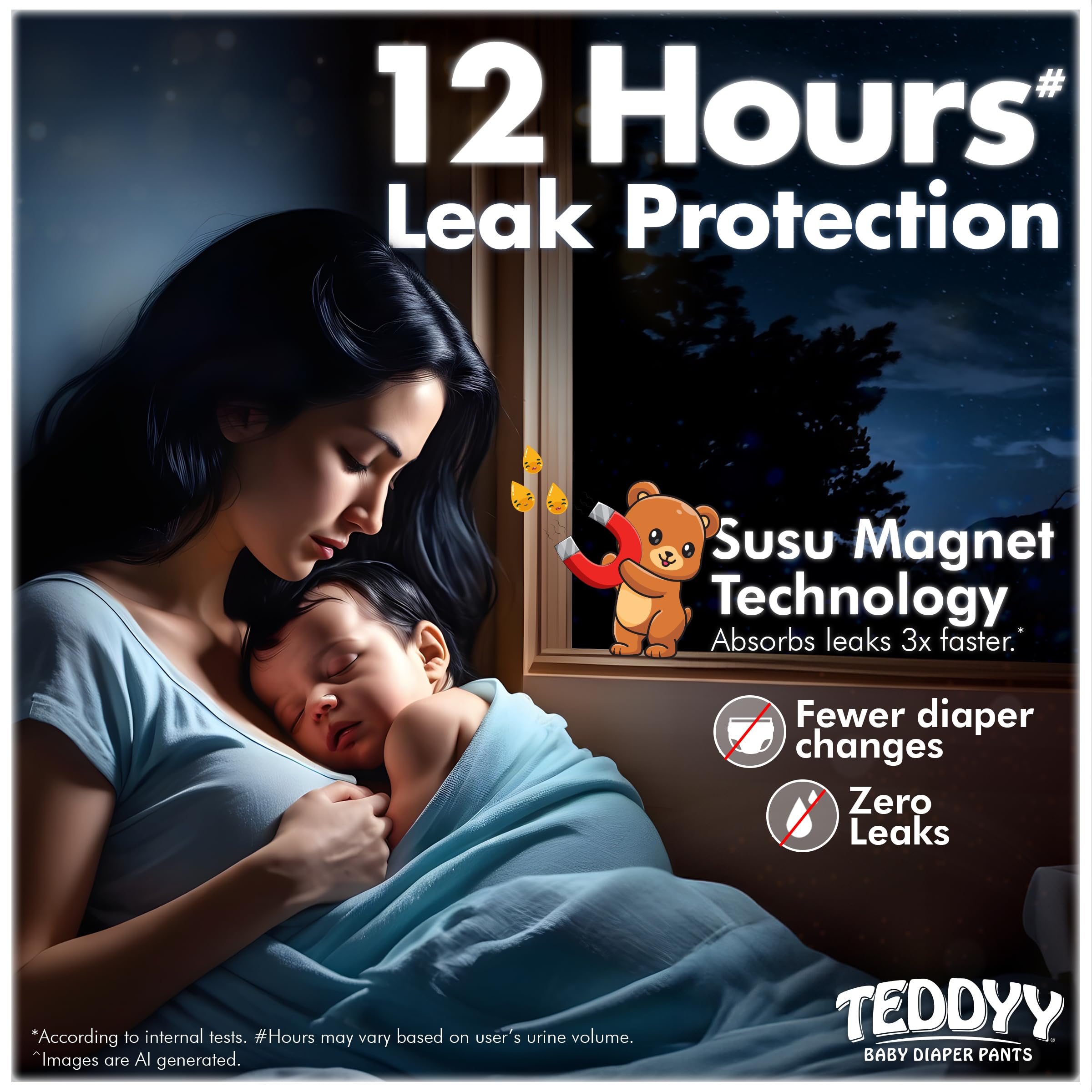 TEDDYY Baby Easy Medium Diaper Pants 100 Count (Pack of 2) 7-12 kgs 12 hrs Leak Protection Anti - Bacterial