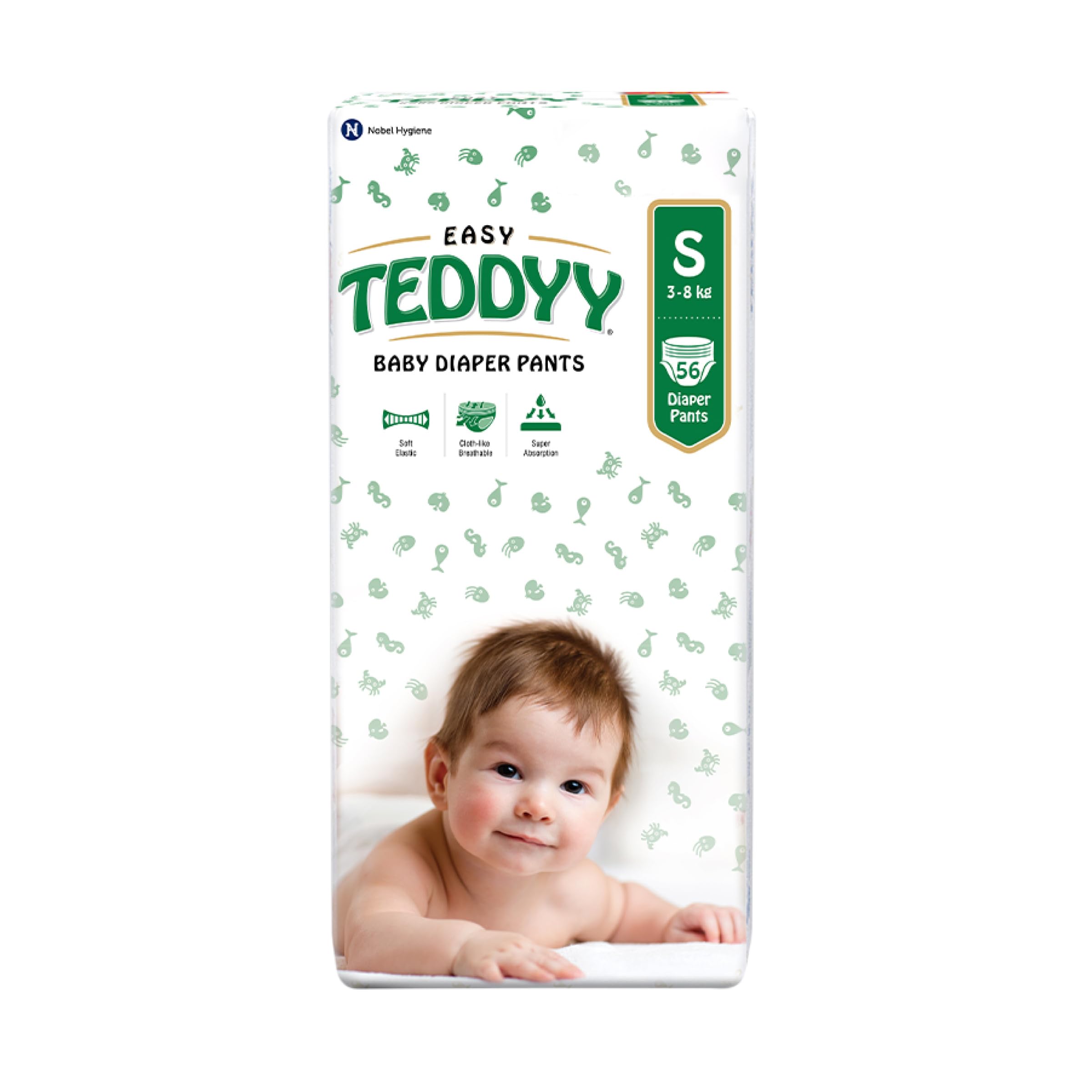 TEDDYY Baby Easy Small Diaper Pants 56 Count (Pack of 1), 4-8 kgs, 12 hrs Leak Protection, Anti - Bacterial
