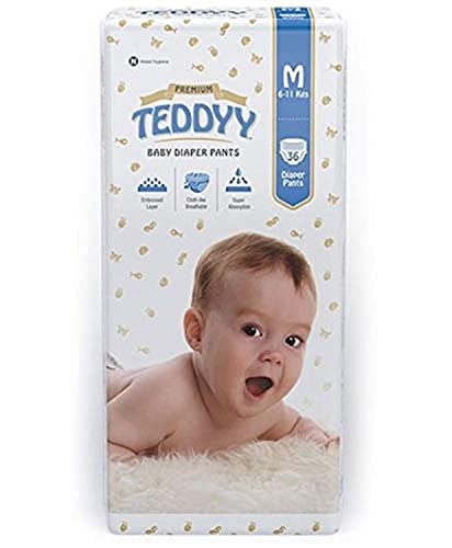 TEDDYY Baby Premium Diapers Pants Medium 36 Count, 7-12 kgs, Long Lasting Absorption, Anti - Bacterial