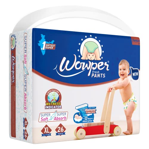 Wowper Baby Diapers | XL |26 count| Wetness Indicator |Anti Rash |up to 12 hrs Absorption |14-17 Kg | Super Soft Diaper