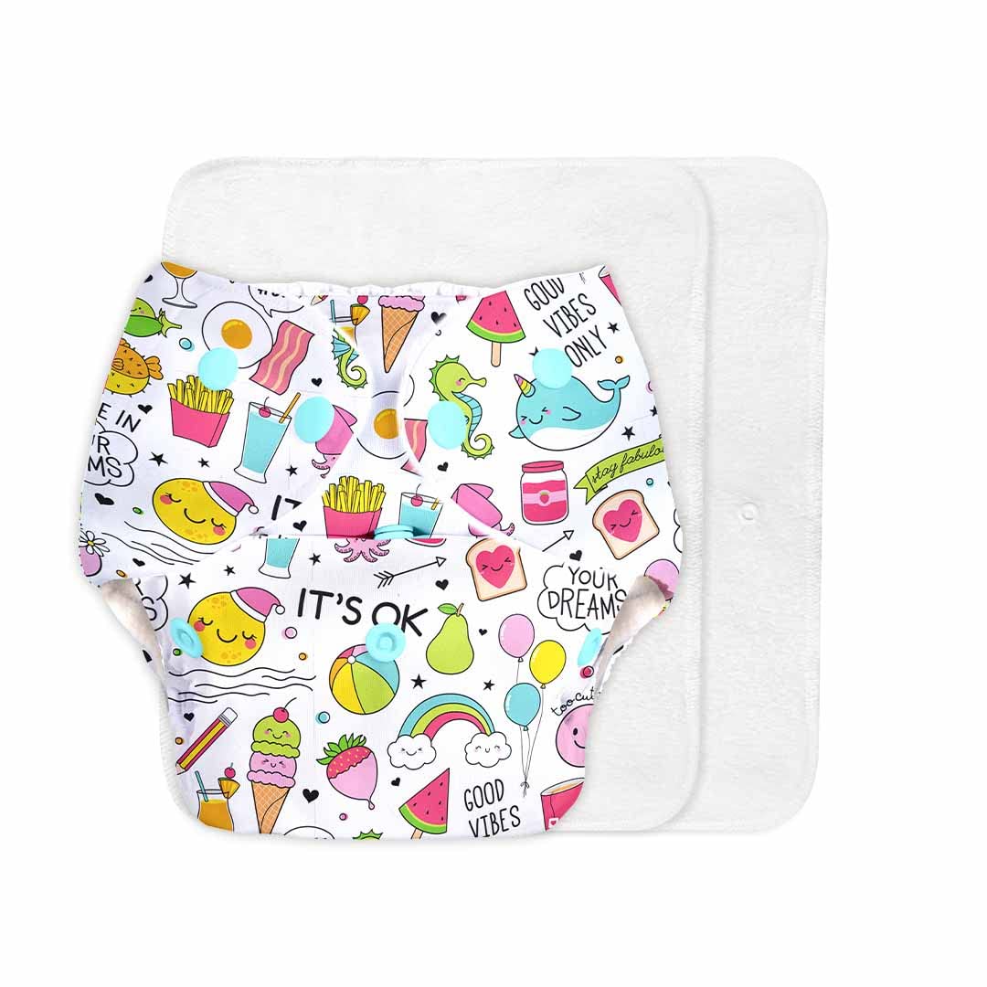 BASIC Cloth Diaper For Baby | Washable & Reusable Cotton Cloth Diaper | 0-3 Years | Freesize | Adjustable | Reduces Rash | With 2 Quick Dry Pad/Insert | Doodles |