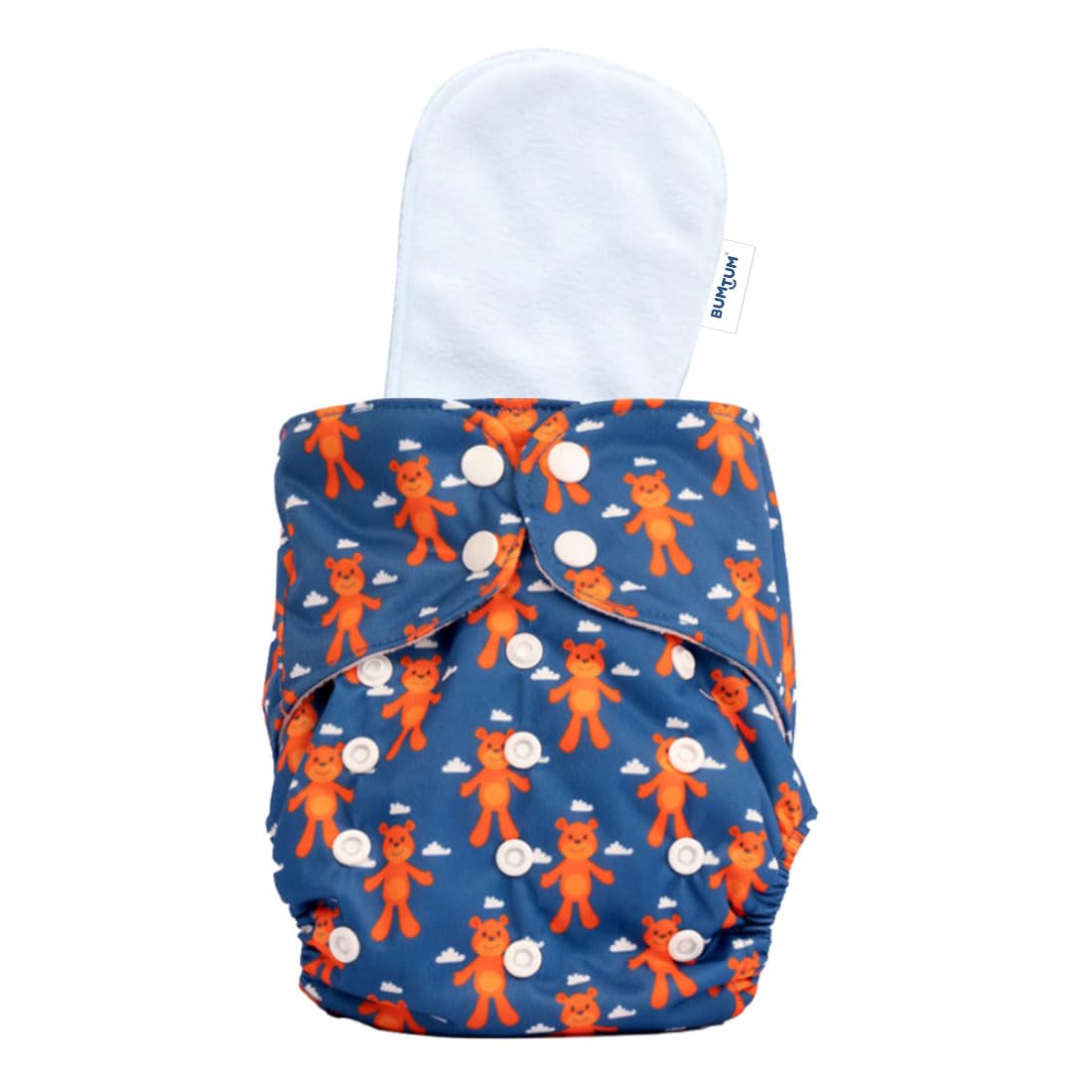 Bumtum Baby Diaper | 0-3 Yrs Baby Freesize | Pack of 1, New Born Baby Diaper, Cloth Diaper, Waterproof Reusable Diaper, 5hrs Absorbency, Ultrahygiene, Washable, Cotton Soaker, Extra Soft (Teddy)
