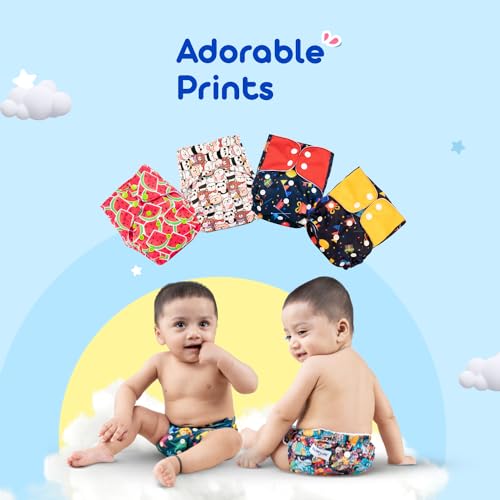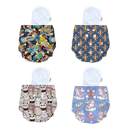 Bumtum Baby Diaper | 0-3 Yrs Baby Freesize | Pack of 4, New Born Baby Diaper, Cloth Diaper, Waterproof Reusable Diaper, Washable, Cotton, Extra Soft (Unicorn, Space Old, Space & Air)