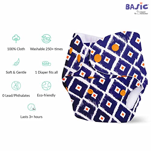 superbottoms 3 Basic Assorted Reusable Cloth Diaper For Babies 0-3 Years | Freesize, Adjustable, Washable & Organic (Comes With Quick Dry Foladable, Dry Feel Pad /Soaker / Insert)