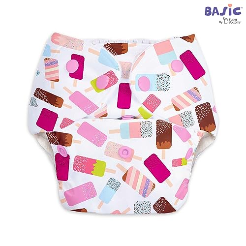 SuperBottoms Basic Bluestar Print diaper with soaker | BASIC Bed Protecting Mat Peppy Pink print Small size - Bed & Floor Protector/Playmat Super Light-Weight 8.5X Absorbent