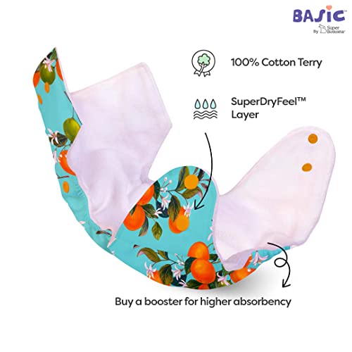 SuperBottoms BASIC Cloth Diaper For Baby | Washable & Reusable Cotton Cloth Diaper | 0-3 Years | Freesize | Adjustable | Reduces Rash | With 2 Quick Dry Pad/Insert | Peaches |