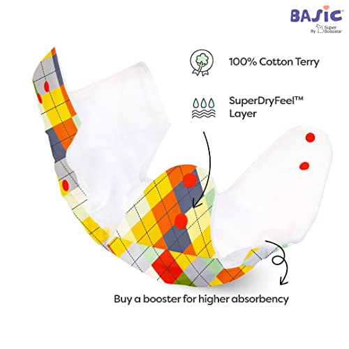 superbottoms Basic Pack Of 4 Assorted Cloth Diaper For Baby & 1 Dry Feel Langot (Fits 0-5 Kg)|Washable & Reusable Cotton Diaper For 0-3 Yrs|FreesizeAdjustable|Reduces Rash|With 4 Quick Dry Pad/Insert