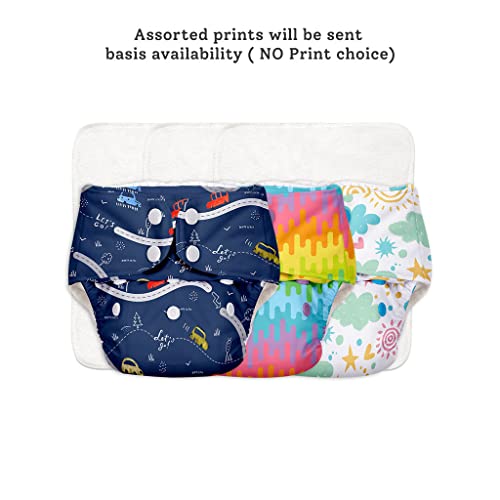 SuperBottoms BASIC Pack of 6 Side Leakage Proof Reusable Cloth Diaper with Quick Dry UltraThin pads|Freesize Rash Free for Kids 0-3 Yrs|Stay Dry & Lasts up to 3Hrs|3 Shell + 3 Pads - Assorted