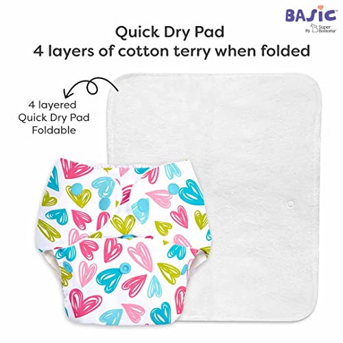 SuperBottoms BASIC Reusable Cloth Diaper with NEW Quick Dry UltraThin pads | 100% cloth Freesize Diapers for baby 0-3 Yrs |Stay Dry & Lasts up to 3Hrs | Trim Fitting, Dries 2times faster | Hearts