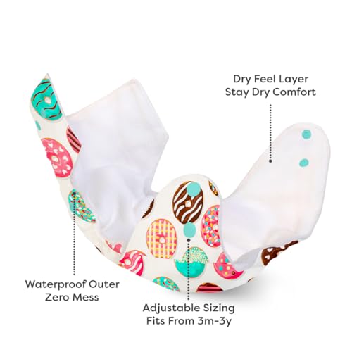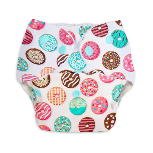 superbottoms Basic -1 Certified Soft Fleece Lined Pocket Diaper with 1 Cotton Terry Insert Non Stay Dry with Snaps-Free Size Cloth (Donut)