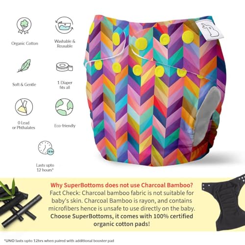 Skin-Friendly Eco-Friendly & Pocket-Friendly: SuperBottoms Freesize UNO Cloth Diaper is made from 100% Organic Cotton Pads which serve as diaper inserts. With its Super DryFeel Layer it keeps your baby's bums dry and helps prevent rashes. Being washable a