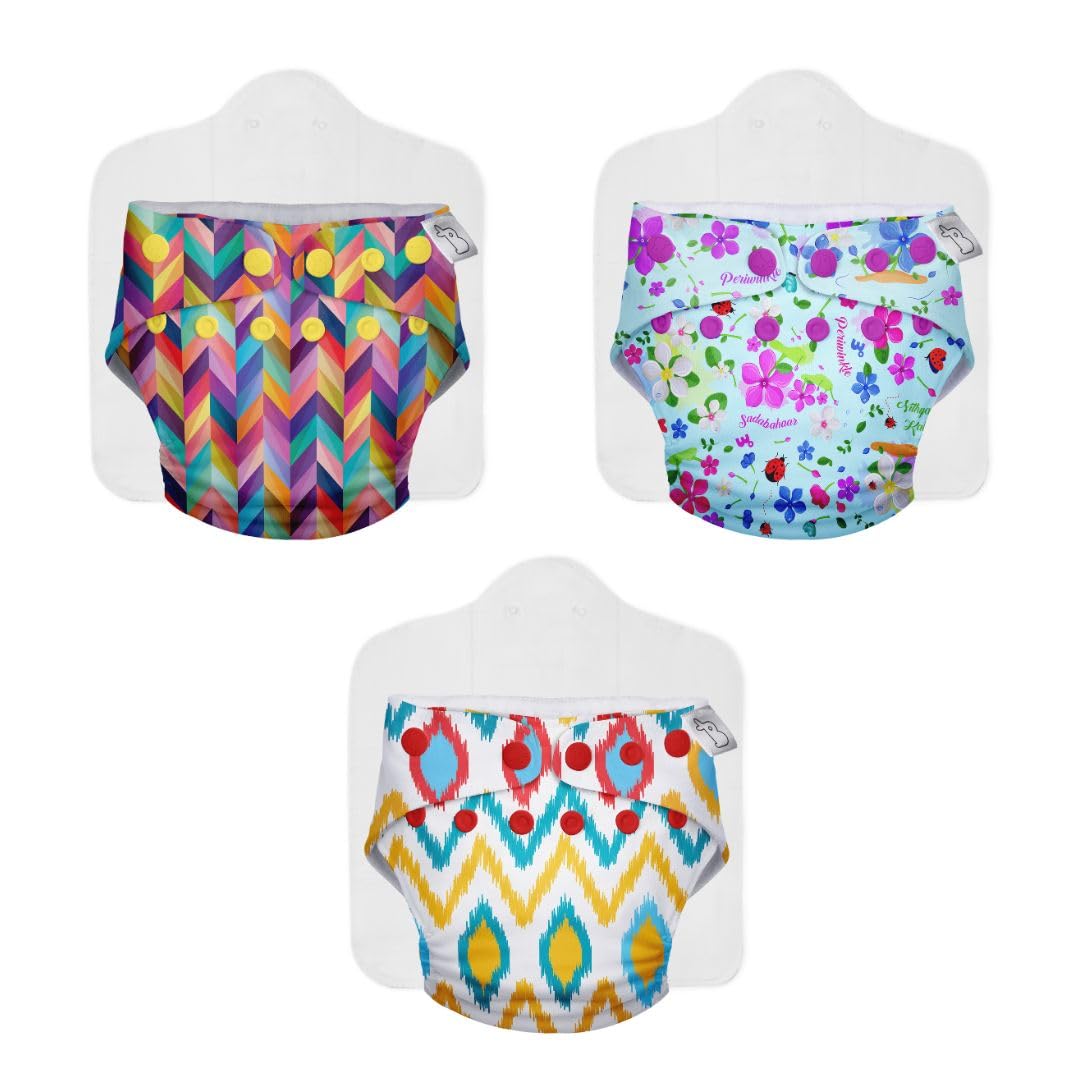 SuperBottoms Combo Pack of 3 Freesize UNO with Easy Snap - Reusable waterproof Adjustable cloth diaper for babies from 5-17kgs with Dry feel Organic cotton Pad - Option 1
