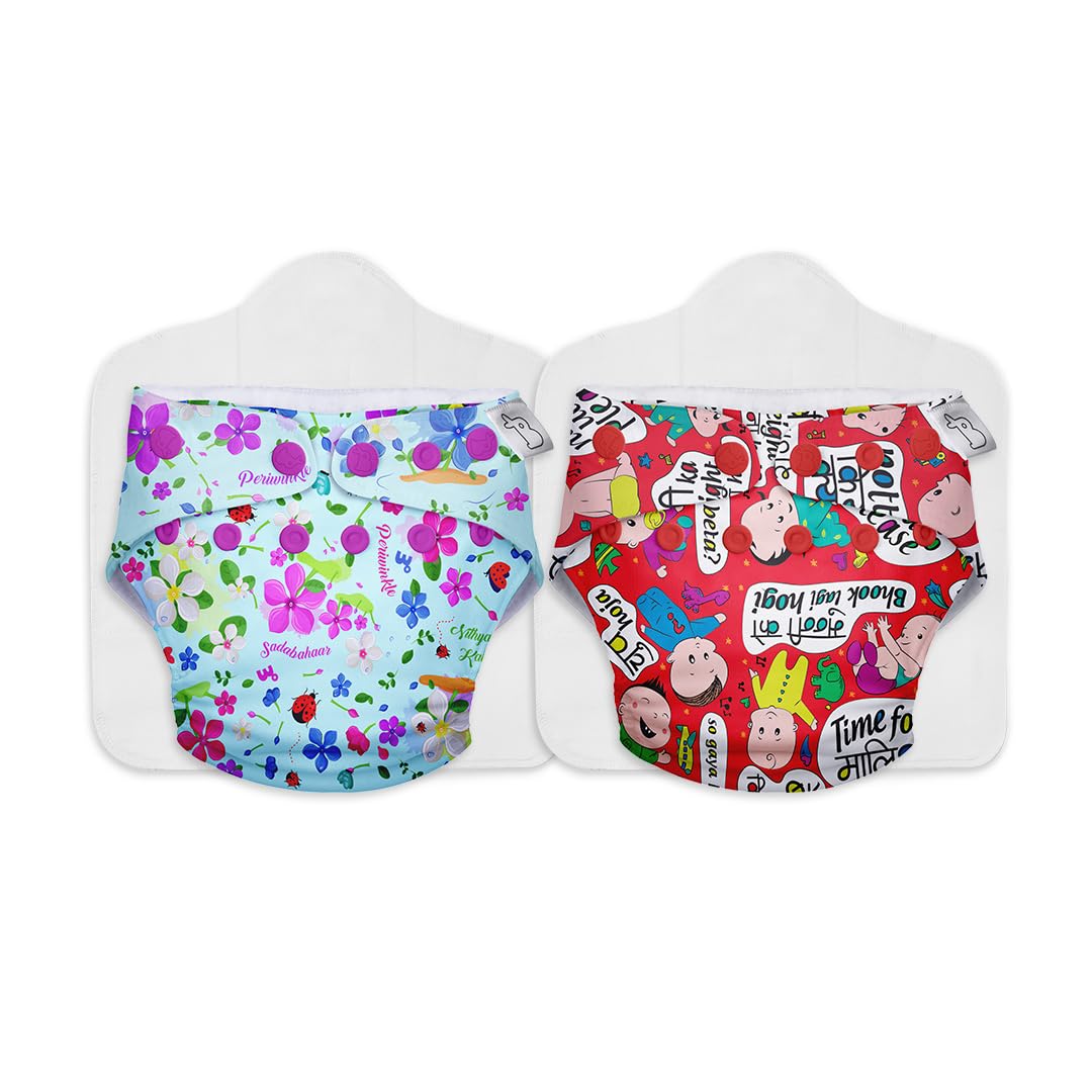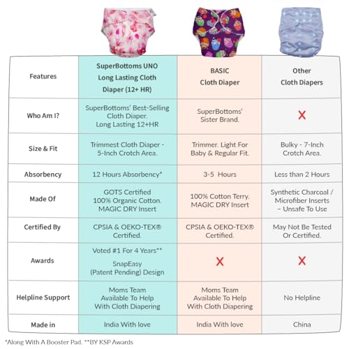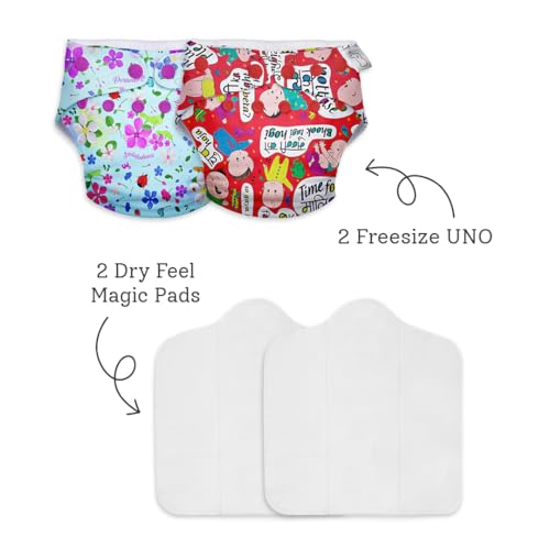 SuperBottoms Combo Pack of 4 (2 Shell + 2 Insert) Freesize UNO - Reusable waterproof Adjustable cloth diaper for babies from 5-17kgs with Dry feel Organic cotton Pad-Option 6