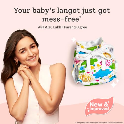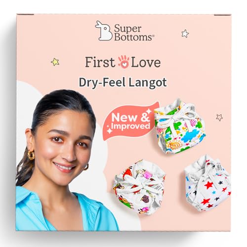 SuperBottoms First Love DryFeel Langot¢ for Newborn Baby | No Mess Langot | Premium Cotton Padding (No Sponge) | Ultra-Soft | Mess-Free Diaper-Free Time | 0-9M | (Printed Pack of 3 Large)