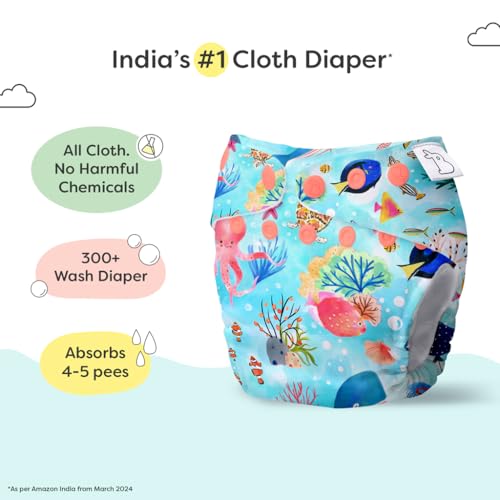 SuperBottoms NEW UNO Freesize Cloth Diaper | Cloth diaper for babies 3M to 3Y | Washable & Reusable cloth diaper | Comes with cloth diaper insert | 1 Diaper and 1 Organic cotton Soaker