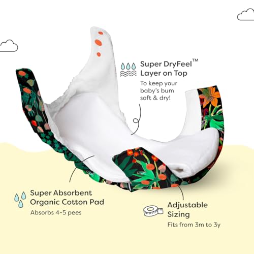 • Skin-Friendly Eco-Friendly & Pocket-Friendly: SuperBottoms Freesize UNO Cloth Diaper is made from 100% Organic Cotton Pads which serve as diaper inserts. With its Super DryFeel Layer it keeps your baby's bums dry and helps prevent rashes. Being washable a