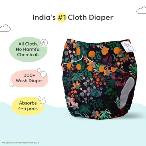 SuperBottoms NEW UNO Freesize Cloth Diaper | Cloth diaper for babies 3M to 3Y | Washable & Reusable cloth diaper | Comes with cloth diaper insert | 1 Diaper and 1 Organic cotton Soaker