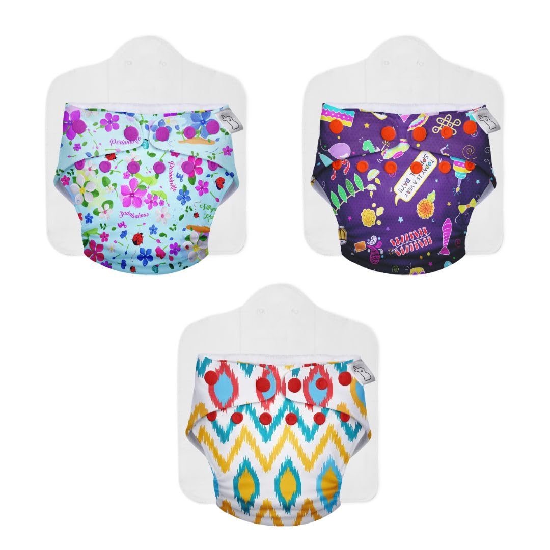 Superbottoms NEW UNO Freesize Cloth Diaper Set of 3| Cloth diaper for babies 3M to 3Y | Washable & Reusable cloth diaper | Comes with cloth diaper insert | 3 Diaper and 3 Organic cotton Soaker