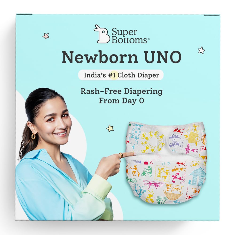 HomeBabyDiaperingCloth Diaperssuperbottoms Newborn Uno Cloth Diaper-Reusable And Washable Cloth Diaper For Newborn Babies From 0-3 Months (0-7 Kg),Softest And Safest Newborn Baby Cloth Diapers With Dry Feel Magic Pad (White Warli)