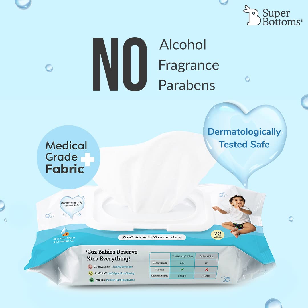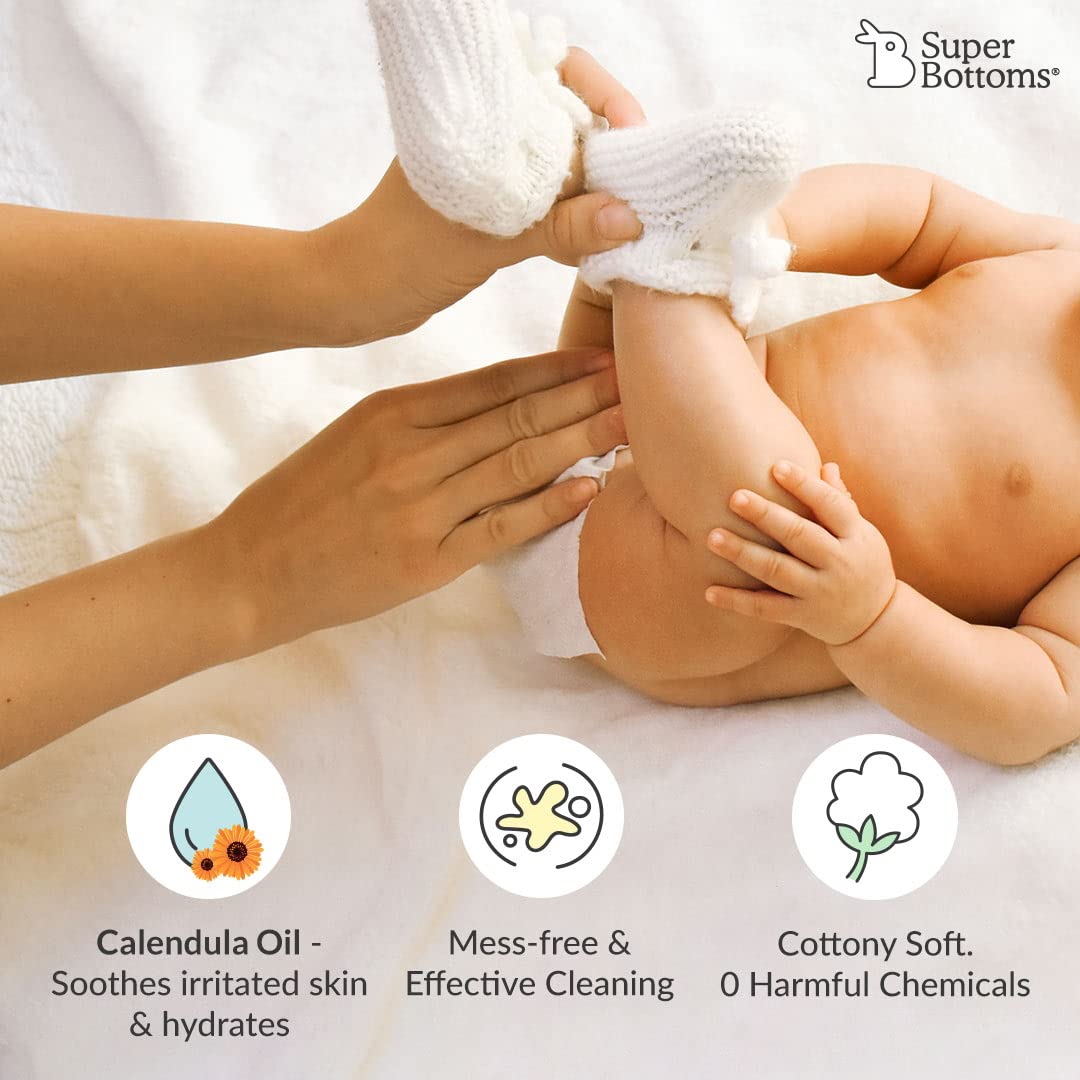 HomeBabyDiaperingCloth DiapersSuperBottoms Pack of 2 Cloth Diapers for babies and XtraHydrating Wipes-72 Pack-Freesize Washable & Reusable waterproof Adjustable cloth diaper for babies from 5-17kgs|Diaper with 2 Dry Feel Pad