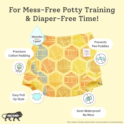 Absorbs 1 pee: It has 3 layers of 100% cotton padding which helps prevent accidental pee. They can handle up to 1 pee and are perfect for moments when your child needs a break from diapers. This is not a diaper.