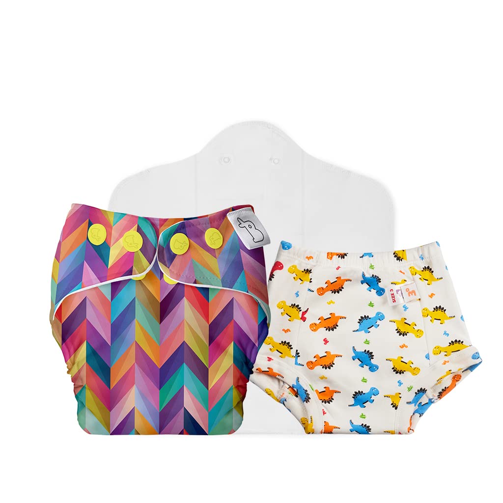 Superbottoms Potty Training Underwear Unisex (Size 0)(9M-12M) & UNO Freesize Cloth Diaper(3M to 3Y) | Washable & Reusable| 1 Diaper and 1 Organic cotton Soaker