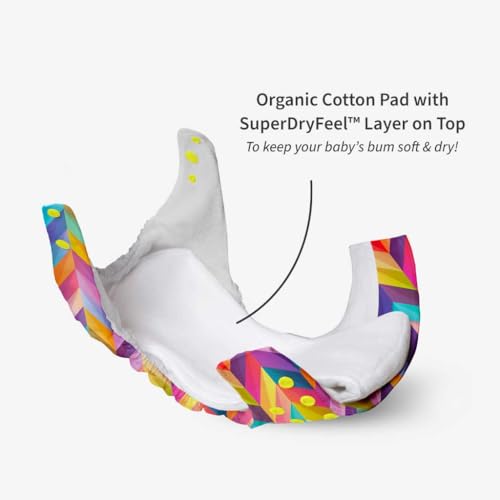 Diaper Consistes of 1 Waterproof Outer and 1 Magic Dry Feel Pad Magic Dry Feel Main Pad consists of 9 layers (after folding) of GOTS Certified 100% Organic Cotton with a MagicDry layer on top to keep your babys bum dry