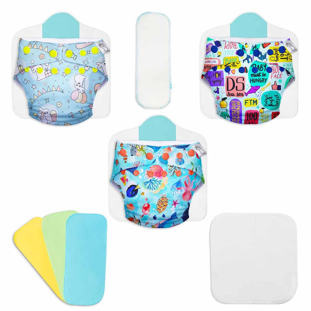 superbottoms Stash Builder Pack With 3 Freesize Uno- New Version| Cloth Diapers Combo For Babies From 3M To 3Y |Comes With 3 Fleece Liners 2 Booster Pads & 1 Very Heavy Wetter Pad 3 Count