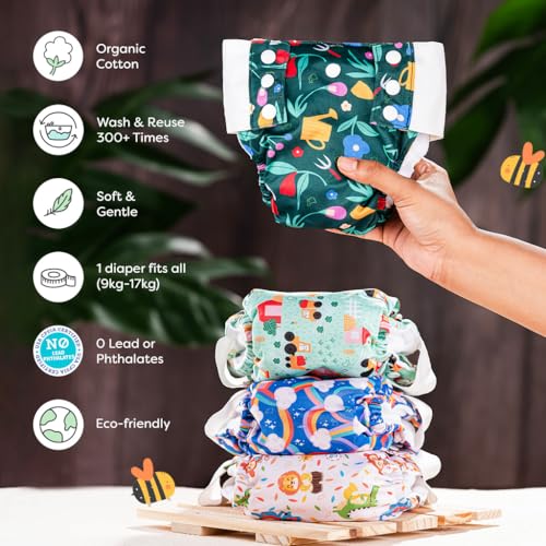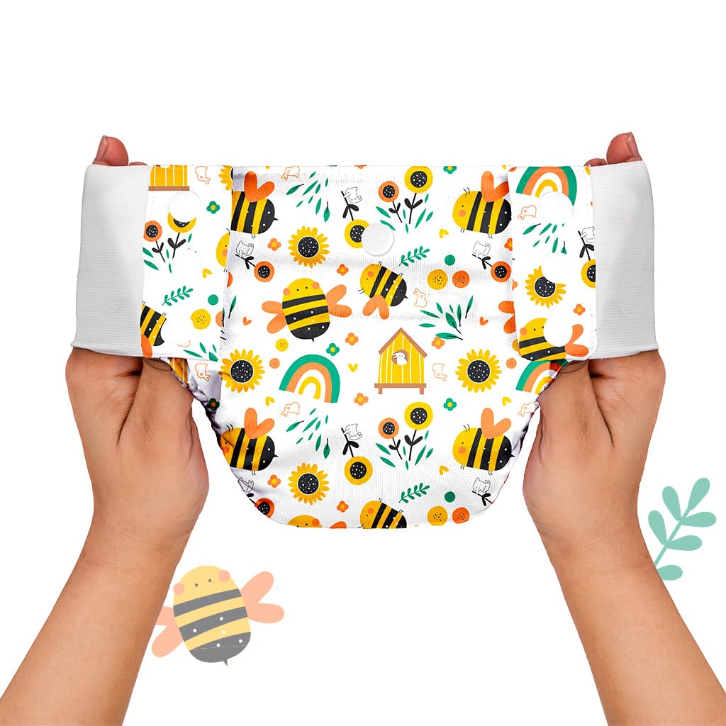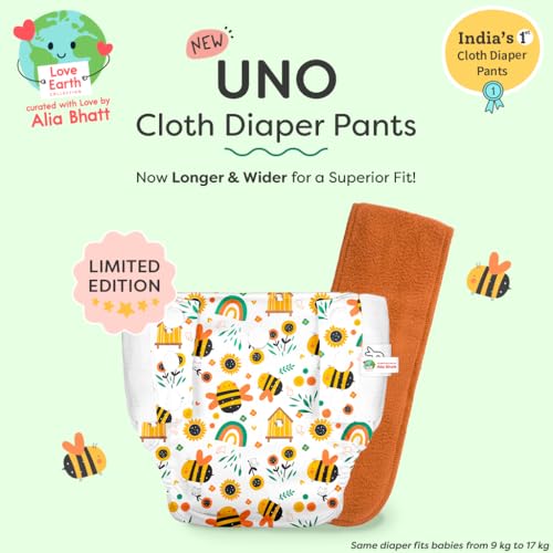 SuperBottoms UNO Cloth Diaper Pants (9kg-17kg) | Pant Style Cotton Diaper Pants | Super Absorbent | Washable & Reusable 300+ times | Comes with a Dry Feel Magic Pad | CPSIA Certified | Buzzy Bees