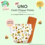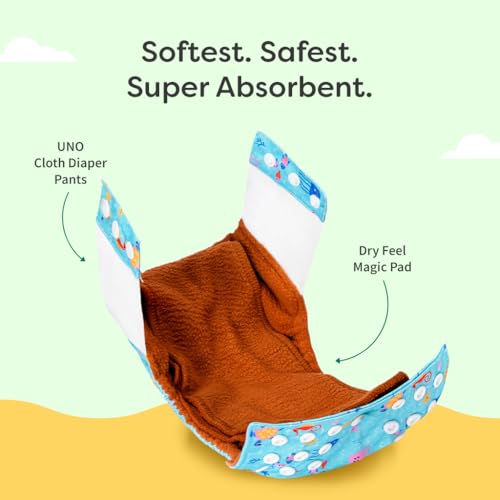 SuperBottoms UNO Cloth Diaper Pants Indias 1st Cloth Diaper Pants with the ease of pull-up diaper and the comfort of cloth! Putting them on is as easy as slipping into underwear. So no more fiddling with too many snaps and flaps just pull them up and youre all set! Why pull-up? Traditional cloth diapers can be frustrating with their complex flaps and snap systems especially for parents of active babies. Our new pull-up style UNO Cloth Diaper Pants eliminate this hassle. With minimal snaps for easy removal you can cleanly remove a soiled diaper without running it down your babys legs. These diaper pants fit snugly thanks to stretchy waistbands that keep your baby comfy. The waterproof outer layer made with PUL fabric keeps leaks at bay while the soft organic cotton pads inside can absorb 4-5 pees. Plus the SuperDryFeel layer ensures your baby feels dry even after peeing. Designed to be washed and reused 300+ times they fit babies from 7 kg to 17kg Theyre also CPSIA certified meaning theyre free from lead phthalates and other harmful toxins. Indeed these are the most comfortable safe and easy-to-wear cloth diapers ever!