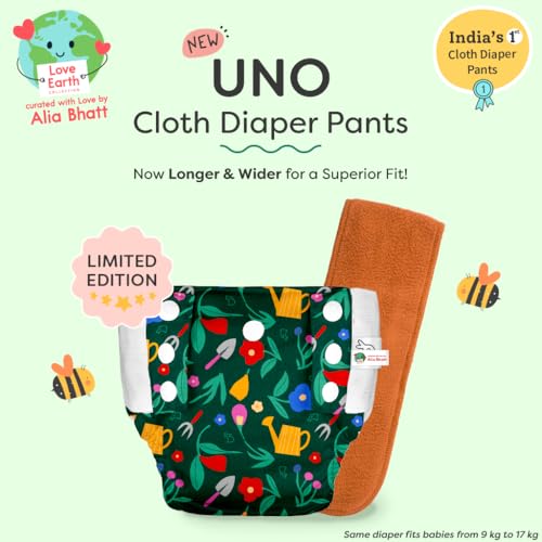SuperBottoms UNO Cloth Diaper Pants (9kg-17kg) | Pant Style Cotton Diaper Pants | Super Absorbent | Washable & Reusable 300+ times | Comes with a Dry Feel Magic Pad | CPSIA Certified | Muddy Meadows