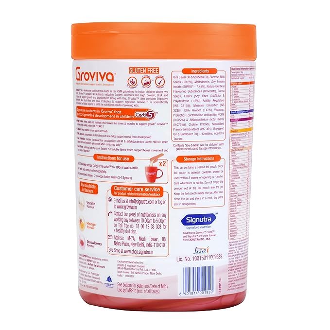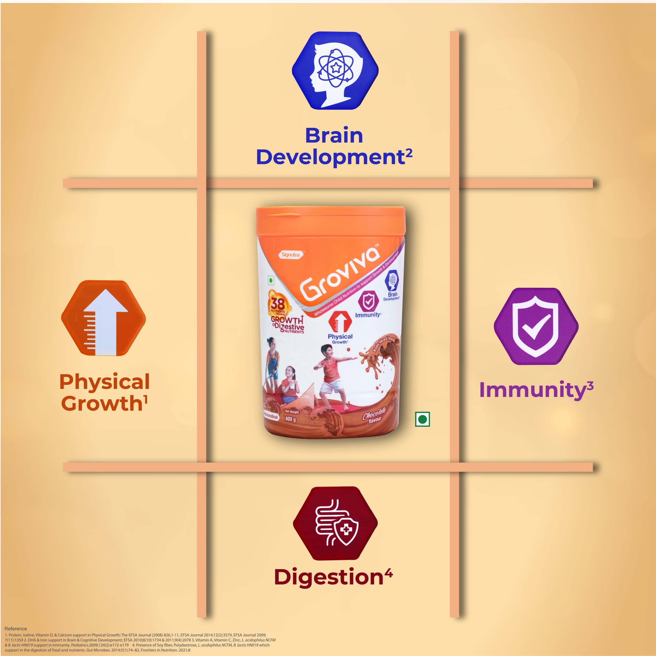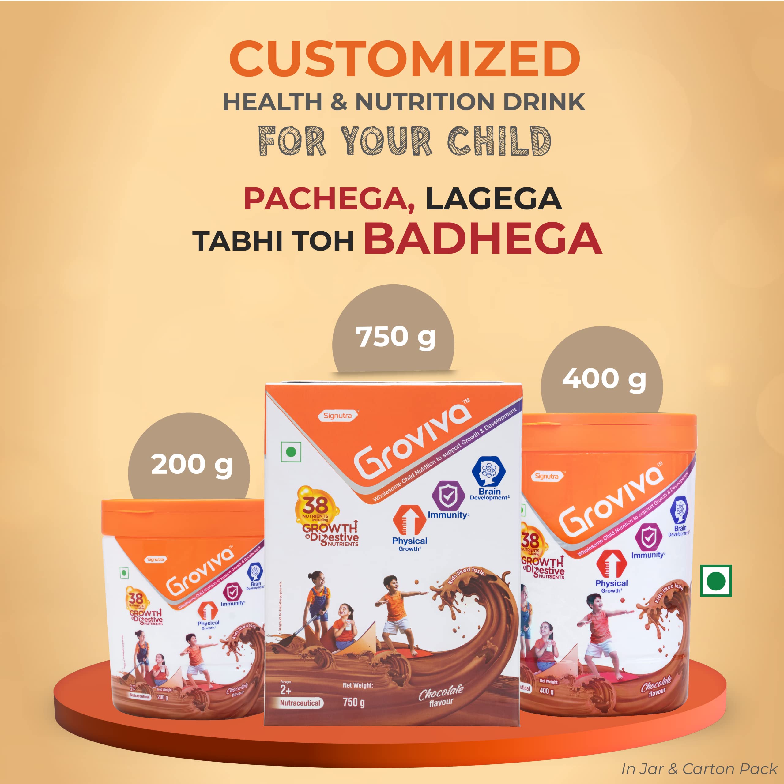 GrovivaTM is a customized wholesome child nutrition brand made as per ICMR guidelines . GrovivaTM is scientifically formulated with 38 key nutrients wherein Certi 5TM signature nutrients support the daily nutrition in children.