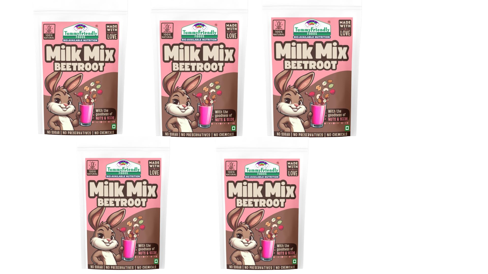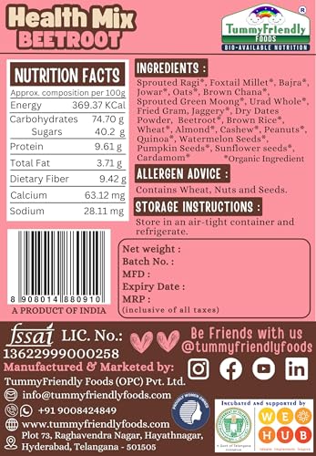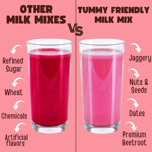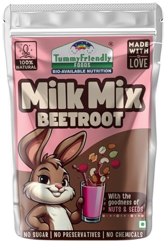Tummy Friendly Beetroot Milk Mix for kids. Made of organic nuts, seeds, healthy milk mix for toddlers, 1 year, 2 year old baby and elder kids. kids milk powder mix - 500g, (100g each pack)
