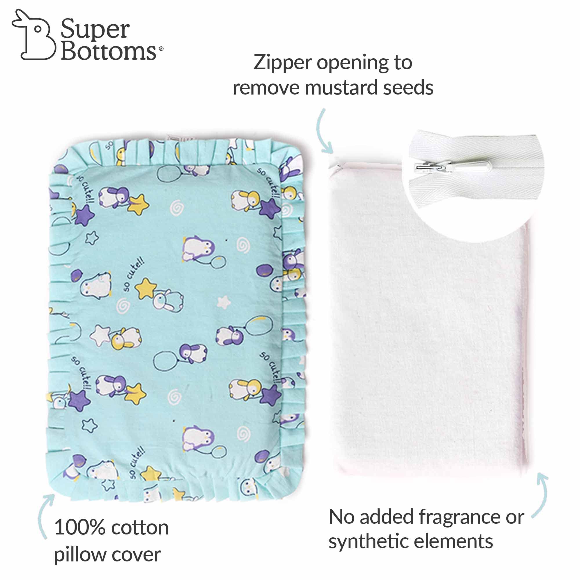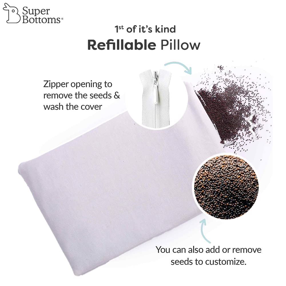 superbottoms Refillable Rai Mustard Seed Pillow with Extra Pillow Cover | Head Shaping Pillow for Newborn Baby | 100% Cotton Cover Customize Mustard Seed Filling | Prevents Flat Head | 0-12M