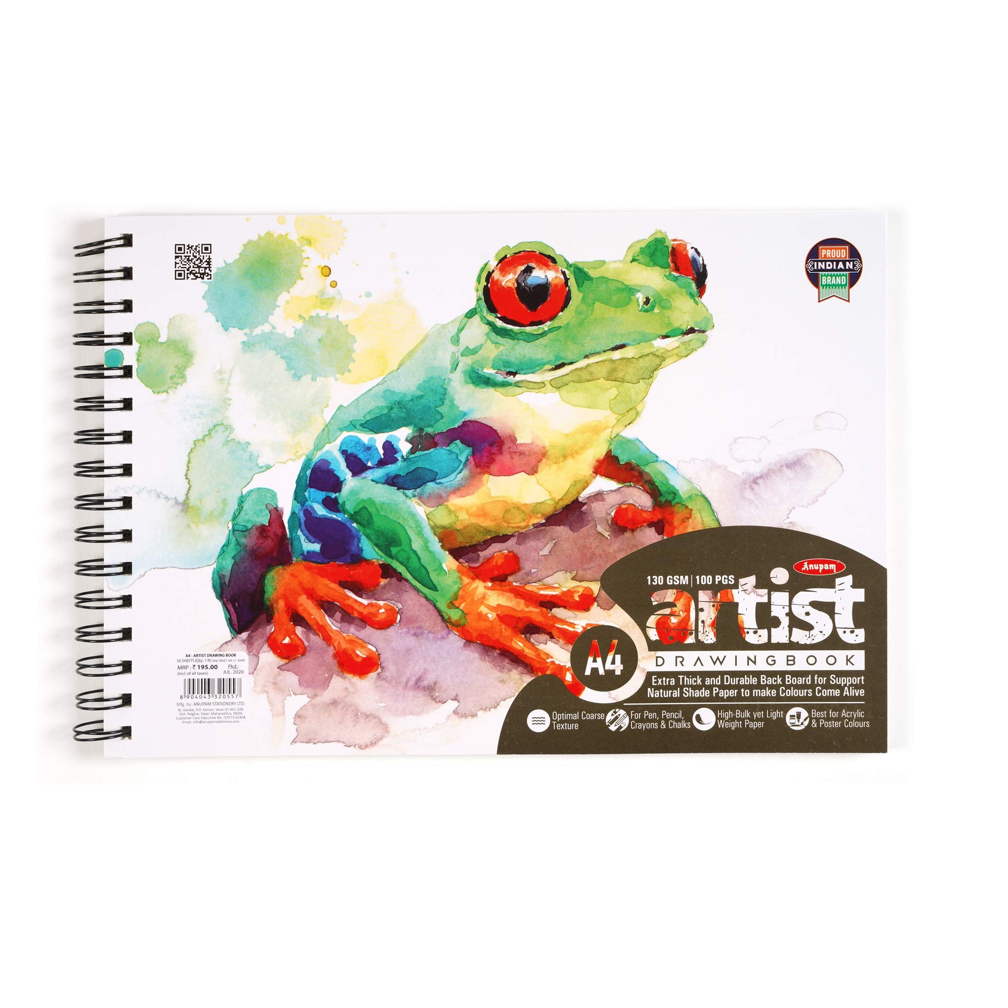 Anupam is an in-house manufacturing brand which supplies stationery products and art materials in India. It was incepted in the year 1973Anupam stationery prides in providing only the highest quality. Whether its a reflection of our happiness our grief our joy our wonder or our longing art is the legacy we will leave behind to tell future generations who we were at this place in time.Although Anupam started its journey with papers it now has an array of art products starting from papers and canvases to easels and takes pride in supplying quality products at an affordable rate.We want to ensure you have a great experience with our products because we truly care about our customers. we're proud of so purchase our products with the confidence. Ideal Use: Sketching drawing doodling graphite painting charcoal painting watercolors acrylic paint ink and pencil thanks to its premium surface. Best sketch book for sketching Sizes available - A5 A4 - Portrait Square (20cm x 20cm) A6 and A3 - Portrait High-quality drawing paper may be used with a variety of media including The ideal paper for sketching drawing manga cartoons still life stippling and experimenting with new techniques Strong smooth and easily absorbing colors and lines which reduces blotching smudges and accidents. Coloring book sketchbook and blank-page book appropriate for all ages Thickness: 140 GSM Cartridge Paper Type of Binding: Hardbound Paper Colour: Natural Shade Cartridge Paper Type of Paper: Optimal Coarse PH Neutral and Acid-Free Paper Number of Pages: 128 in all the sizes