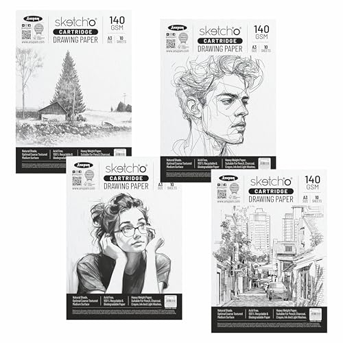 Anupam is an in-house manufacturing brand which supplies stationery products and art materials in India. It was incepted in the year 1973Anupam stationery prides in providing only the highest quality. Whether its a reflection of our happiness our grief our joy our wonder or our longing art is the legacy we will leave behind to tell future generations who we were at this place in time.Although Anupam started its journey with papers it now has an array of art products starting from papers and canvases to easels and takes pride in supplying quality products at an affordable rate.We want to ensure you have a great experience with our products because we truly care about our customers. we're proud of so purchase our products with the confidence. Ideal Use: Sketching drawing doodling graphite painting charcoal painting watercolors acrylic paint ink and pencil thanks to its premium surface. Best sketch book for sketching Sizes available - A5 A4 - Portrait Square (20cm x 20cm) A6 and A3 - Portrait High-quality drawing paper may be used with a variety of media including The ideal paper for sketching drawing manga cartoons still life stippling and experimenting with new techniques Strong smooth and easily absorbing colors and lines which reduces blotching smudges and accidents. Coloring book sketchbook and blank-page book appropriate for all ages Thickness: 140 GSM Cartridge Paper Type of Binding: Hardbound Paper Colour: Natural Shade Cartridge Paper Type of Paper: Optimal Coarse PH Neutral and Acid-Free Paper Number of Pages: 128 in all the sizes